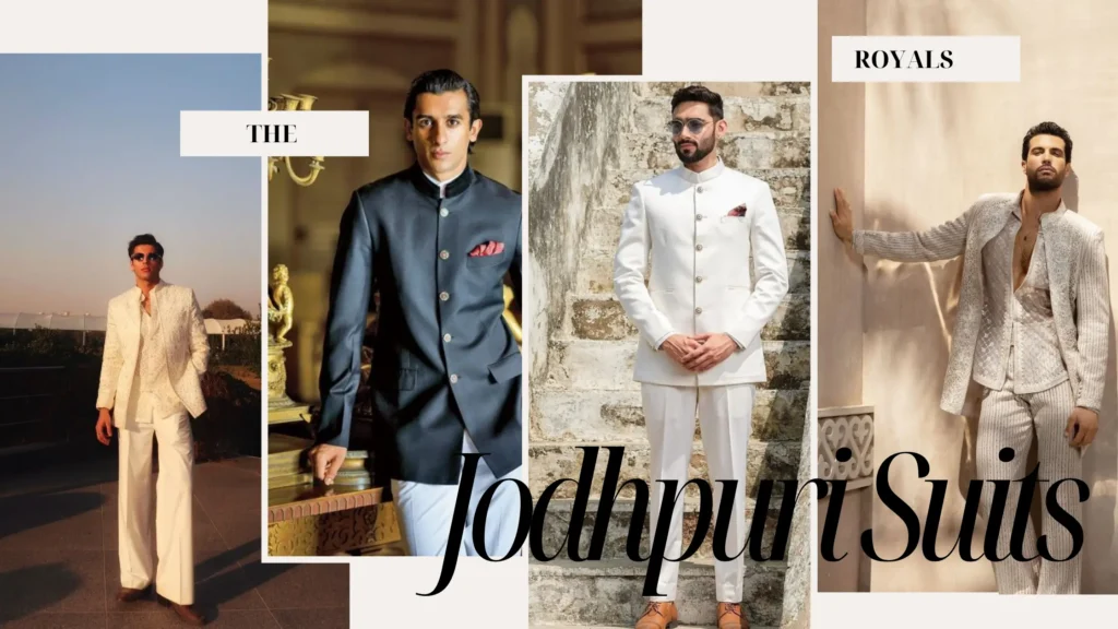 The Jodhpuri suit, also called the Bandhgala suit, is a royal attire of Rajasthan. These suits show a fine blend of tradition and royalty. They are made from rich fabrics and decorated with detailed embroidery. The designs reflect Indian aesthetics and create a timeless style that never goes out of fashion. In the 90s, this attire was mostly worn by the maharajas. With time, Jodhpuri suits became a symbol of class and royalty. Today, this mix of tradition and modern fashion makes the wearer shine at any occasion. It not only gives elegance but also helps the wearer stand out with grace and confidence. So Choosing the jodhpuri suit latest design for wedding can instantly add elegance to your wedding style.