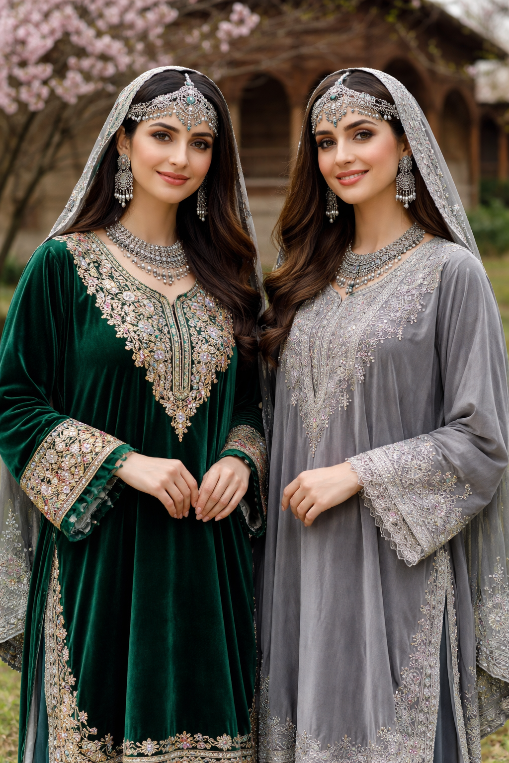 Wedding and festival Pherans represent the pinnacle of Kashmiri textile artistry. Bridal Pherans are often made from luxurious fabrics like pashmina, silk, or velvet, adorned with extensive Tilla (gold thread) embroidery, sequins, and sometimes semi-precious stones. These heirloom pieces are passed down through generations, carrying family history and tradition.